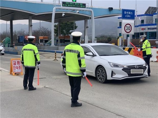 9지구대는 최근 관내 주요 톨게이트의 차종별 통행량을 분석해 승합차나 가족단위 이동 차량이 많은 곳을 선정했다. 고속도로 진입로에서부터 전 좌석 안전띠 착용 여부를 확인하고 운전자 미착용의 경우 범칙금, 뒷좌석 등 동승자 미착용의 경우 과태료를 부과하고 있다.