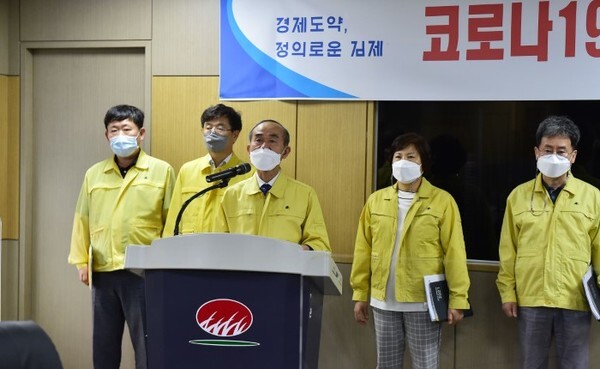 박준배 김제시장은 지난 19일 김제 동초등학교 첫 코로나 19 확진자 발생 관련해 21일과 22일 이틀 연속 긴급 언론브리핑을 가졌다.