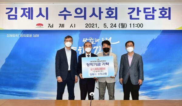 진정운 공수의사는 “오늘 간담회를 통해 가축 질병 발생 차단을 위해 축산 농가와 함께 최선의 노력을 하겠다”는 뜻을 밝히며, 청소년들이 꿈과 희망을 갖고 활기찬 학창 시절을 보낼 수 있도록 김제사랑 장학재단에 매년 100만 원의 장학금을 기탁키로 했다.