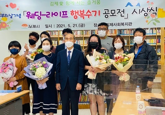 김제사회복지관에서 열린 부부의 날 행사에서 결혼 출산장려 공감 문화 확산을 위해 추진한‘웨딩-라이프 행복수기 공모전’우수작에 대해 24일 시상식이 열렸다.