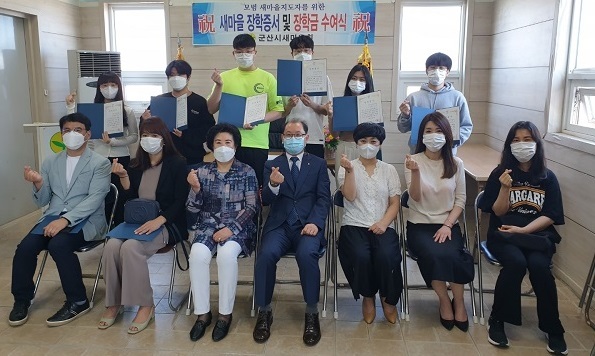 군산시 새마을회(회장 정수영)는 최근 새마을회 회의실에서 새마을 지도자 대학생 자녀 8명에 게 총 1059만원의 장학금을 전달했다.
