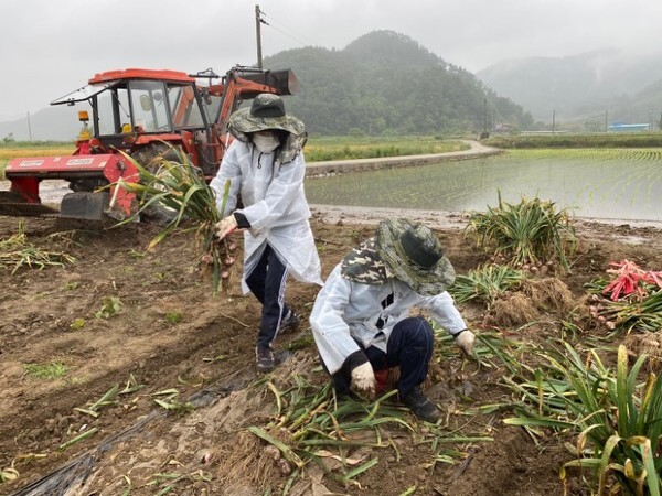 이날 일손돕기는 코로나19 장기화로 외국인 근로자의 입국이 제한되고, 농촌 인구의 감소와 고령화로 인력 구하기에 힘든 농가에 도움을 주고자 실시됐다. .