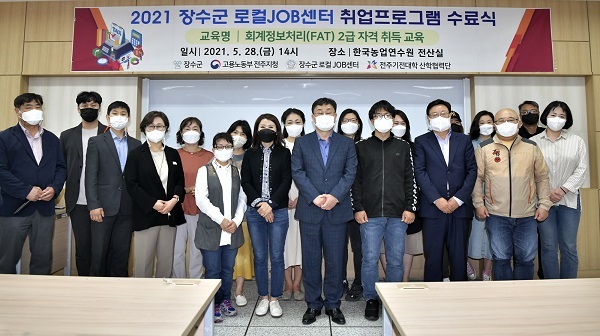 장영수 군수는 “교육과정을 성실히 수료한 것에 대해 축하드린다”며 “앞으로도 군민이 원하고, 업체에서 필요로 하는 구직취업역량을 강화하기 위해 취·창업프로그램을 발굴하고 개설·운영토록 적극 지원하겠다”고 말했다.