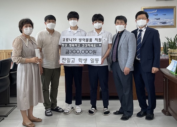 최강열 전일고 교장은 “학생들이 자발적으로 기부할 의사를 밝혔다”며, “코로나19로 인해 힘들어 하는 이웃들의 방역 물품 지원에 사용됐으면 좋겠다”고 했다.