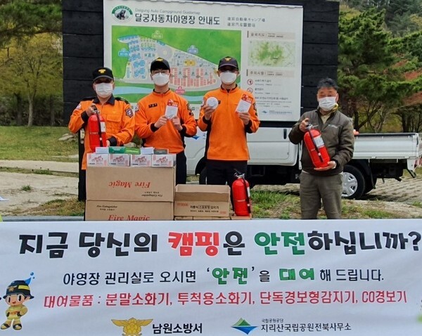 이는 봄철 화재방 특수시책 결과로 분석됐는데 시책으로는 △지리산국립공원 전북사무소 자동차야영장 투수객에게 기초소방시설 3771건 무료 대여 △다문화가정에 기초소방시설 120개 및 ‘다문화 소화기 사용법 가이드북’ 배부 △관내 목조문화재 30개소에 화기엄금 표지 60개 설치 △보절면 취약 가구에 기초소방시설 111대 설치 등이다.
