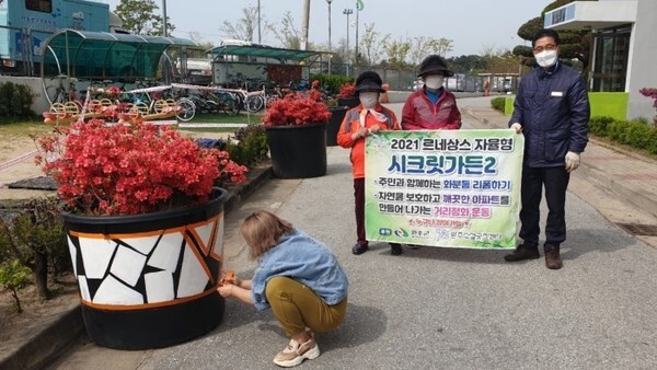 박영숙 대표는 “아파트에 배치된 화분은 지난해 구입한 것으로, 부녀회에서 철쭉 등 꽃나무를 함께 심었다”며 “그러나 화분 전체가 검정색이다 보니 차량 주차 시 잘 보이지 않고 심미적 효과가 떨어졌다”고 리폼 진행 이유를 밝혔다.