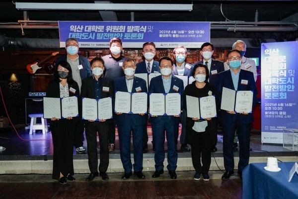 익산시와 원광대, 익산문화도시지원센터는 16일 대학로의 인디클럽인 ‘올댓뮤직’에서 원광대 앞 대학로를 지역의 대표적인 청년문화거리로 조성하기 위한 협약을 맺고‘익산대학로위원회’를 발족했다.
