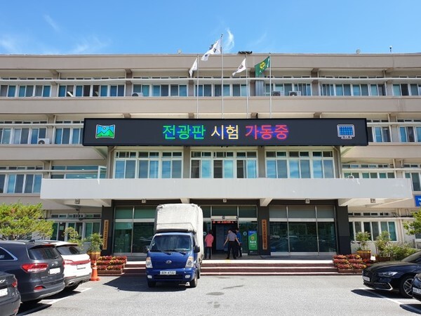 익산시는 지난 6일 시청 본관 입구에 LED전광판을 새로 설치했다.