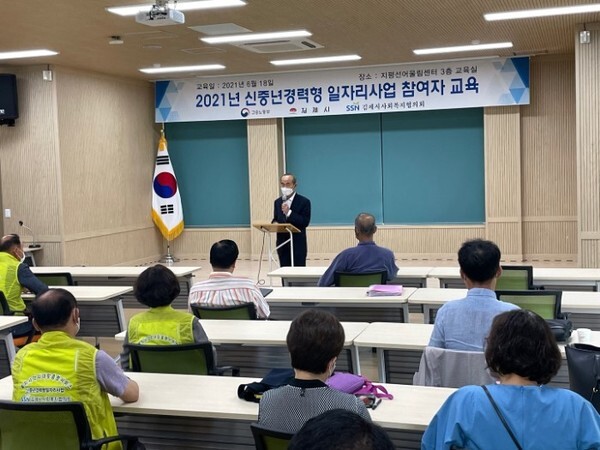 김제시는 지난 18일 지평선어울림센터에서 신중년 경력형 일자리 대상자 20여 명이 참석한 가운데 ‘신중년 경력형 일자리 참여자 워크숍’을 개최했다.