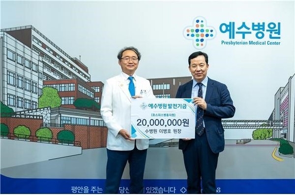 이병호 수병원장이 지난 16일 예수병원(병원장 김철승)에 호스피스 병동지원을 위한 발전기금 2000만 원을 후원했다고 20일 밝혔다.