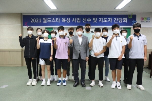22일 도 체육회는 월드스타 육성 선수 간담회를 열고 선수와 지도자를 격려했다.