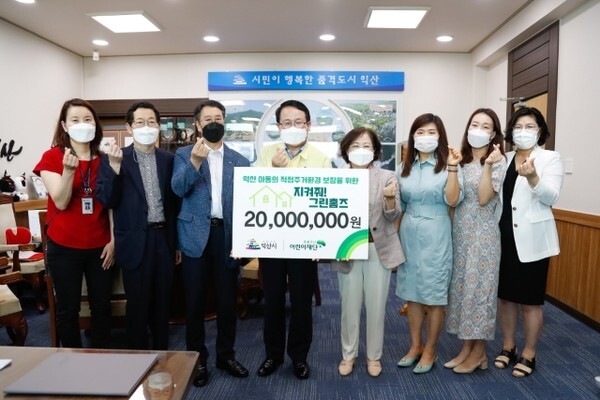 익산시 드림스타트와 초록우산어린이재단 전북지역본부는 24일 정헌율 익산시장, 구미희 초록우산어린이재단 전북지역본부장, 유기달 익산후원회장 등이 참석한 가운데 가정이 어려운 아동의 주거환경 보장을 위한 업무협약을 체결하고, 아동들이 보다 쾌적한 환경에서 성장할수 있는 주거환경조성을 위한 ‘지켜줘! 그린홈즈(Green Homes)’ 선포식도 개최했다.