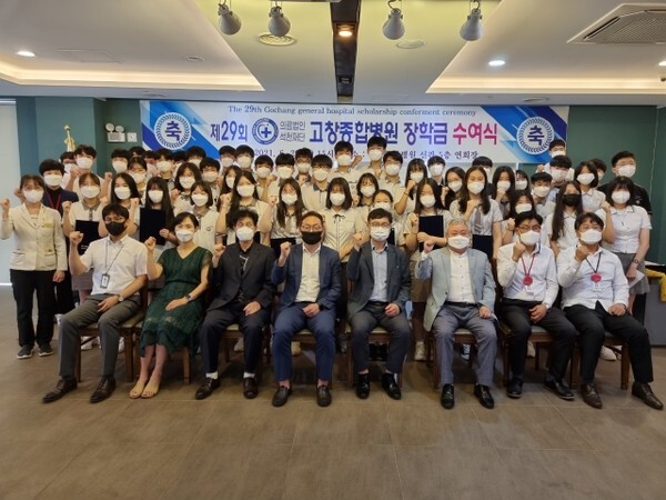 제29회 석천재단 고창종합병원 장학금 수여식이 29일 김영주 고창고 교장, 서기열 고창여고 교장, 장학생 48명, 조남열 이사장과 임직원 등이 참석한 가운데 고창종합병원(이사장 조남열) 5층 연회장에서 열렸다. 총 48명의 장학생에게 3540만원의 장학금을 수여했다.