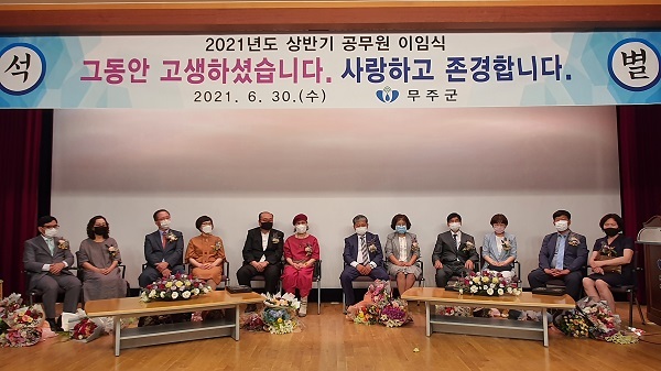 황인홍 군수는 “오늘의 무주를 만든 주역으로서 30여년 가량의 청춘을 오롯이 무주군에 바쳤다고 해도 과언이 아니신 여러분께 감사와 존경의 마음을 전한다”며 “누구보다 뜨거웠던 여러분을 거울삼아 더 열심히 뛰어 나가겠다”라고 전했다.