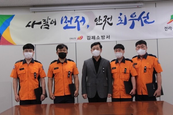 김제소방서(서장 전두표)는 5일 본서 2층 소회의실에서 보직 간부 소방공무원 4명에 대한 임명장 수여식을 가졌다.