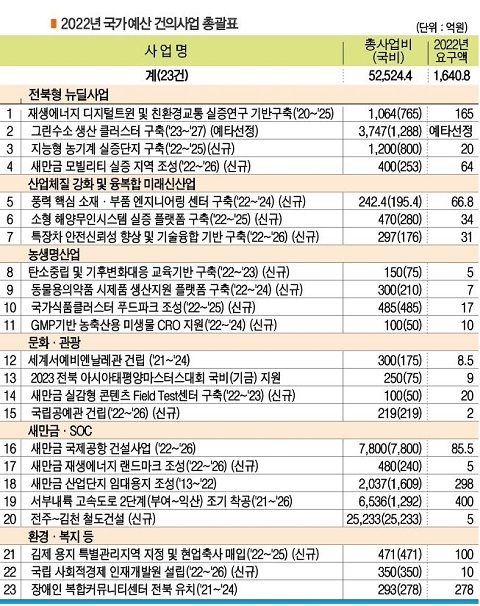 전북도와 민주당 전북도당은 “2022년도 국가예산 전략은 도내 대학교수 등 전문가 그룹과 토론하고 전북연구원에 제시한 방안 중 실현가능성이 높고, 전북경제에 가시적인 성과를 나타낼 수 있는 사업들도 구성했다”고 설명했다.