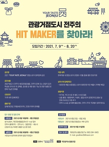 전주시가 오는 10월 전주한옥마을에 오픈 예정인 ‘2021 YOUR TASTE JEONJU 팝업스토어(임시 상점)’에 입점할 업체를 모집한다.