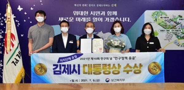 김제시 인구정책이 전국 자치단체 중 가장 우수한 정책으로 인정을 받았다.