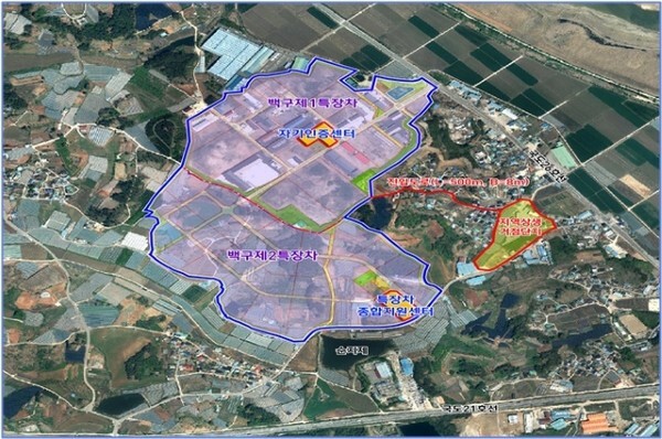 백구 제2 특장차단지는 산업시설 용지 257,658㎡(76.6%), 지원시설 용지 9,067(2.7%), 공공시설 용지 69,597(20.7%)로 산업단지가 조성될 계획이다.