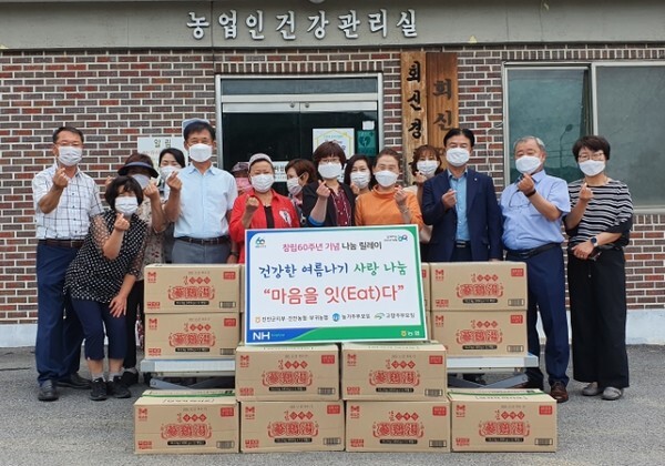 중복을 이틀 앞둔 19일, 농협진안군지부(지부장 정미경)와 농업인여성단체(농가주부모임, 고향주부모임)는 ‘마음을 잇(Eat)다’라는 슬로건 아래 어려운 이웃들과 ‘삼계탕 나눔’ 행사를 실시했다. 농협 창립 60주년을 기념하면서 어려운 조합원들의 건강한 여름나기에 보탬을 주자는 취지로 실시된 이날 나눔 행사에선 삼계탕 168인분이 고령 조합원들에게 배달됐다.