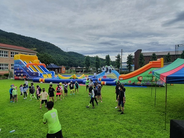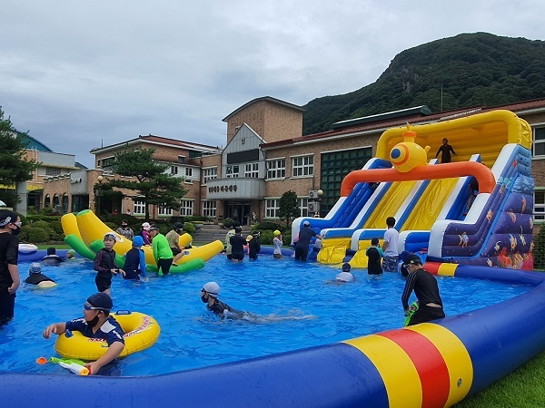 이 학교는 지난 19일부터 20일까지 이틀 동안 ‘물빛으로 물들이다’라는 주제 아래 학교 운동장에 물놀이 시설을 설치, 운영했다.