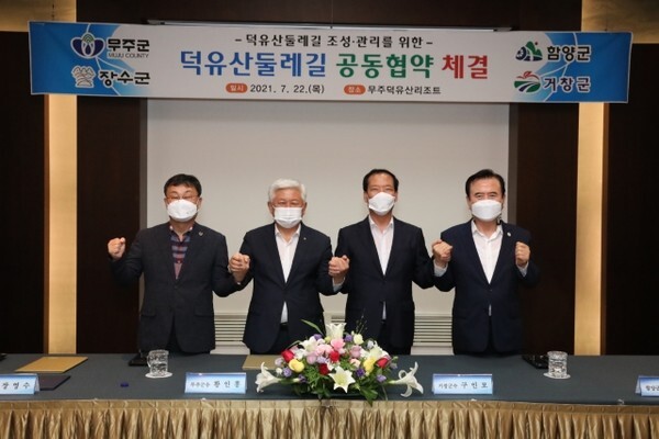 22일 무주덕유산리조트에서 진행된 협약을 통해 이들 4 지역은 △덕유산 둘레길 조성 이후 지속가능한 관리·운영 △덕유산권역의 자연경관 보호 △가치 있는 문화·역사자원의 발굴과 복원 △덕유산 둘레길 주변 마을 공동체 발전을 위한 행정·재정적인 지원 등을 약속했다.