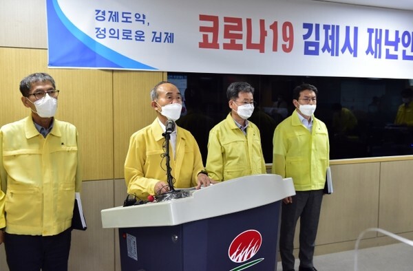 박준배 김제시장은 27일 관내 코로나 19 확진자 집단 발생에 따른 긴급 언론브리핑을 비대면으로 열고 시민들에게 개인 방역수칙 등 준수사항을 당부했다.