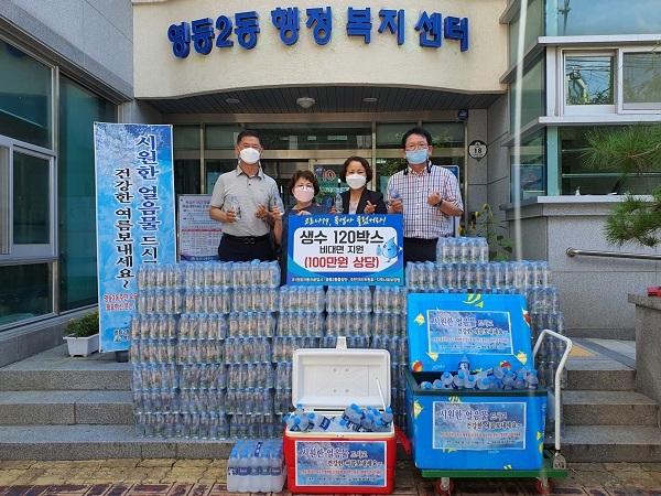 영등2동 행정복지센터 앞과 아트박스 사거리 등 2곳에서 하루 얼음생수 100개씩 나눔