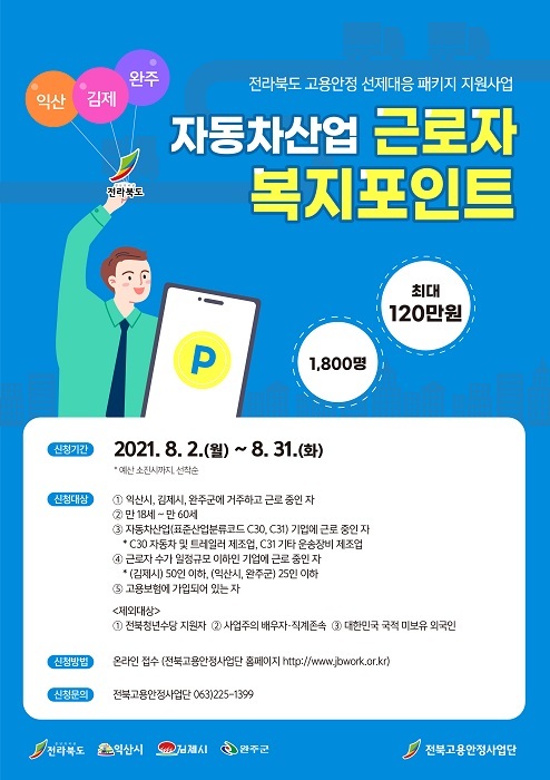 도는 21억 원을 투입해 익산, 김제, 완주 지역의 자동차 관련 기업 근로자에 최대 120만 원의 복지포인트를 지원할 계획이다.