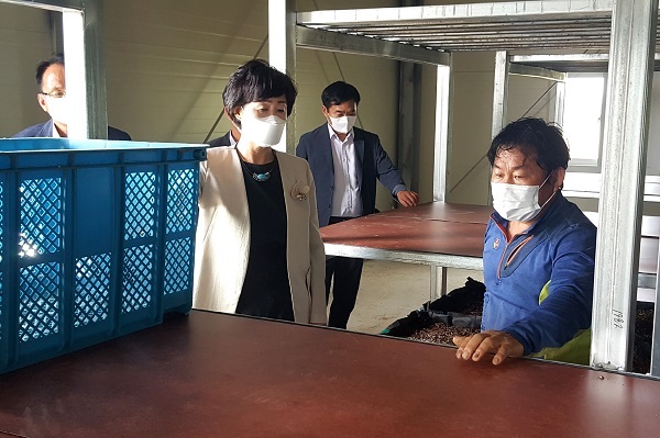 이어 안성면 천마 시설활용을 통한 다단재배 시범사업 농가를 방문한 박 원장은 천마재배 현황과 다단재배 시 장단점, 처음 사업시행 시 사업추진의 어려움과 건의사항 등을 꼼꼼히 청취했다.