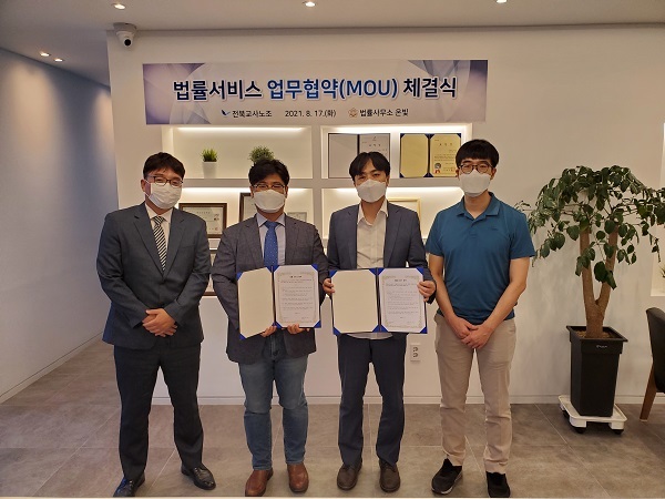 법률사무소 온빛과 전북교사노조는 17일 오후 법률사무소 온빛 사무실에서 곽효영, 고봉찬 변호사 정재석 교사노조 위원장 등이 참석한 가운데 법률서비스 업무협약(MOU)을 체결했다.