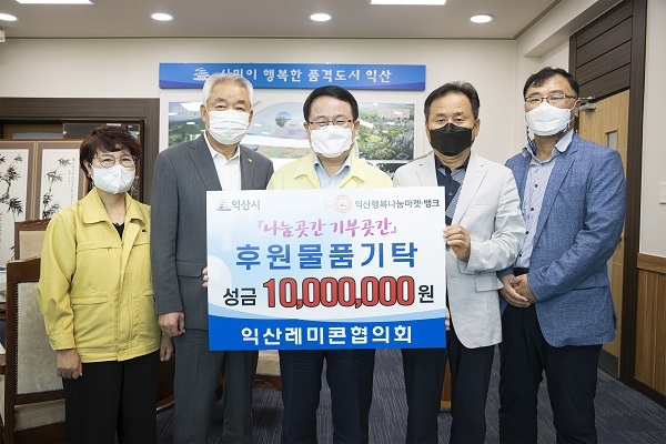 익산레미콘협의회(회장 김병찬)는 지난 20일 정헌율 익산시장을 방문해 코로나19로 경제적 위기에 처한 어려운 이웃들을 위해 써 달라며 ‘다이로움 나눔곳간’ 성금 1000만원을 쾌척했다.