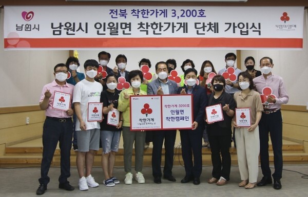 전북사회복지공동모금회(회장 김동수)는 남원시 인월면(면장 이은주)의 자영업소 5곳이 단체로 착한가게 캠페인에 동참했다고 22일 밝혔다. 이번 참여로 전북지역 착한가게는 3200개소를 돌파했다.