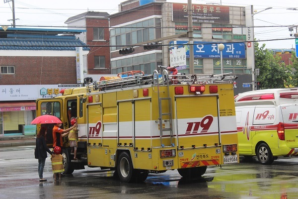 전주완산소방서(서장 김광수)는 23일 신속한 출동과 골든타임 확보를 위해 소방통로 확보 및 소방차 길 터주기 훈련·동승 체험을 실시했다.