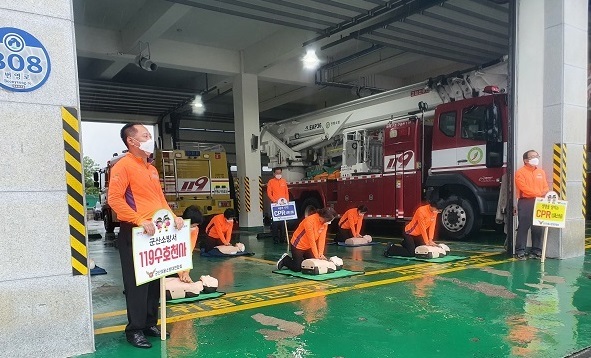 군산소방서(서장 전미희) 의용소방대 연합회는 최근 소방서 청사 주차장에서 심폐소생술 퍼포먼스 행사를 진행, 호응을 얻었다.
