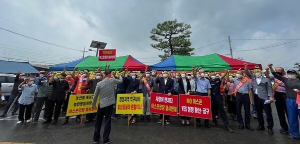 마을 공동 대책위원회는 지난 24일 황산면에서 진행한‘토우세라믹 아스콘공장 증축 관련 도시관리계획 지구단위계획 신청(변경) 주민설명회’에 참석해 머리띠를 두르고 피켓을 흔들며 아스콘공장 증축 계획 철회를 요구하며 반발했다.