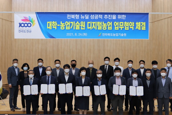 군산대학교 소프트웨어융합공학과는 지난 24일 디지털농업 발전을 위해 전라북도농업기술원(원장 박경숙) 및 전북지역 5개 대학과 상호 협력 교류에 관한 업무협약을 체결했다.