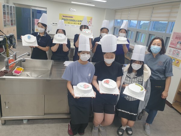 장수군청소년상담복지센터가 관내 고등학교 재학생과 진로체험 일환으로 지난 5월부터 매주 1회 ‘케이크 디자이너 자격증 과정’를 운영하고 있다.