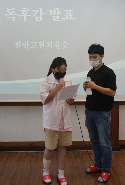 이날 행사에서 학생들은 방학기간 동안 선정, 제공된 생태환경 동화 <내일을 지키는 작은 영웅들(이자벨 콜롱바 저서)> 을 읽고 독서 감상문을 작성·제출해 평가를 받았다. 평가는 숲속작은도서관 김대현 사서가 진행했다. 내일을>