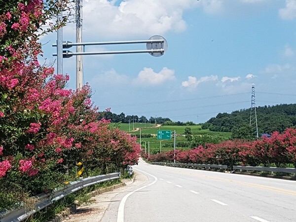 지난 2010년도부터 2013년까지 3년에 걸쳐 이 곳 도로변 양옆에 식재된 4700여본의 배롱나무가 최근 여름내 무더위와 때늦은 가을 장마를 이겨내고 붉은빛 아름다움을 한창 발하는 장관 연출에 나서면서 절대 놓쳐서는 안되는 드라이브 필수 코스로 손꼽히고 있다.