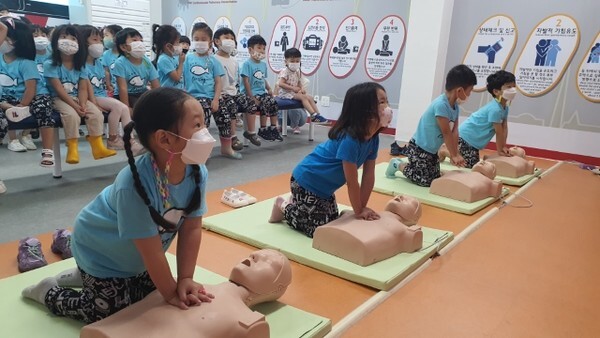 교육 내용은 심폐소생술 이론 및 실습, 119신고요령, 소화기 사용법 등 다채로운 프로그램으로 구성됐으며, 특히 어린이들이 생활주변에서 발생할 수 있는 각종 안전사고를 주제로 안전 상식을 체득하는 소중한 시간들로 채워졌다.