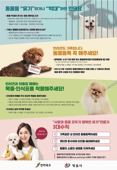 이에따라 반려인과 비반려인이 지켜야 하는 예절과 동물보호법 개정사항을 알리는 포스터를 배부하며, 유기 동물 입양행사도 병행 추진하고 있다.