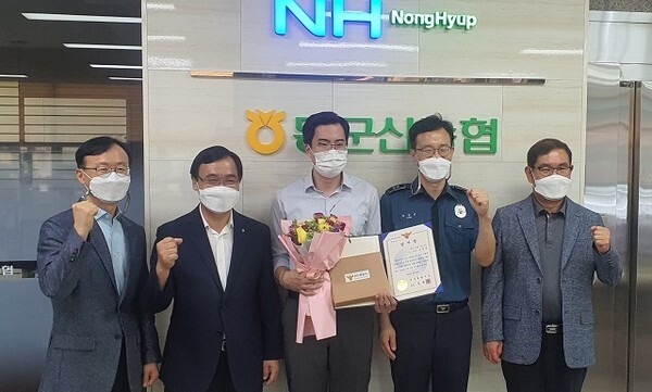 군산경찰서는 최근 조합원의 SNS 메신저 피싱 피해를 예방한 공로로 동군산농협 성산지점 대출계에 근무하는 김준영 계장에게 감사장을 전달했다.