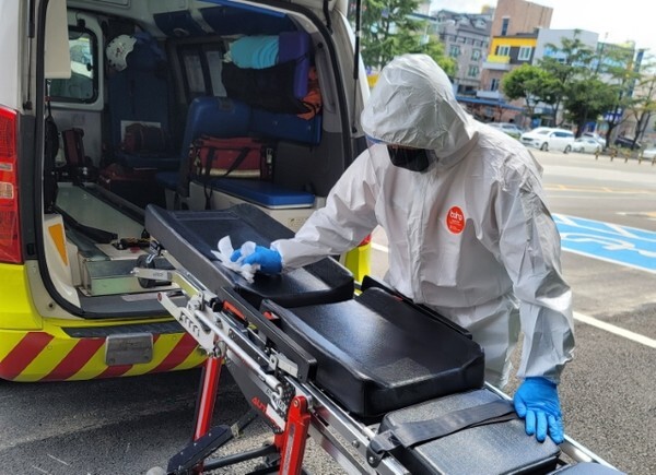 윤병헌 서장은 “시민의 안전만큼은 반드시 지켜낸다는 신념으로 오늘도 묵묵히 자신의 위치를 지키고 있는 구급대원이 있다”라며 “더운 날씨에도 감염 보호복을 입고 이송을 하고 있는 구급대원들이 자랑스럽다”고 말했다.