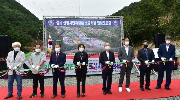 김제 선암 자연휴양림 조성사업 첫 삽을 뜨기 위해 6일 박준배 김제시장 및 김영자 시의장, 황영석 도의원 등 관계기관 등이 참석한 가운데 현장 보고회를 개최했다.