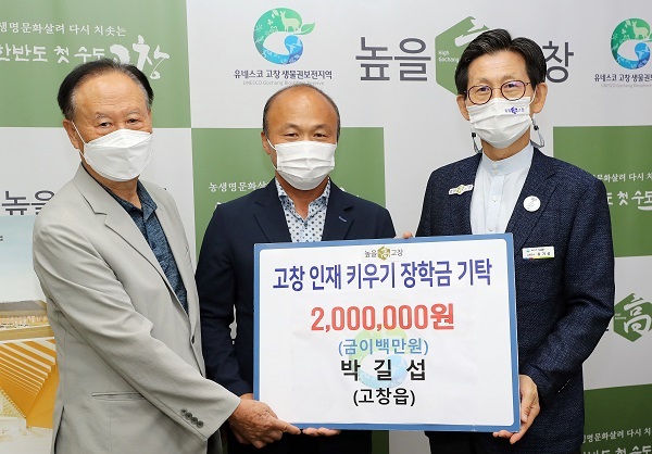 지난 3일 고창읍에 거주하는 박길섭씨가 (재)고창군장학재단에 장학기금 200만원을 기탁했다. 박길섭씨는 “아이들이 올바르게 성장해 사회에 쓰임 받는 사람으로 성장할 수 있는 디딤돌이 되길 바란다”고 전했다.