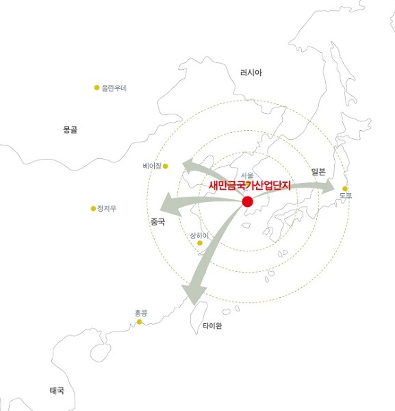 특히 새만금 산단은 국·내외 기업의 동북아 지역의 투자전초기지로 중국, 일본, 유라시아 진출이 쉬운 환서해권 중심에 위치한 전략적 요충지로 꼽힌다.