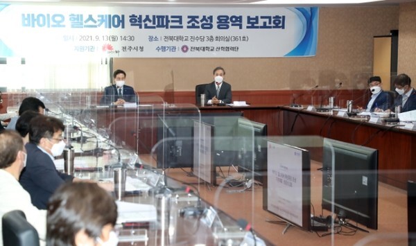 시는 13일 전북대학교 진수당 3층 회의실에서 김승수 전주시장과 김동원 전북대 총장, 권대규 전북대 창업지원단장 등 관계자가 참석한 가운데 ‘전주형 바이오 헬스케어 혁신파크 조성 기본계획 연구용역 최종보고회’를 개최했다.