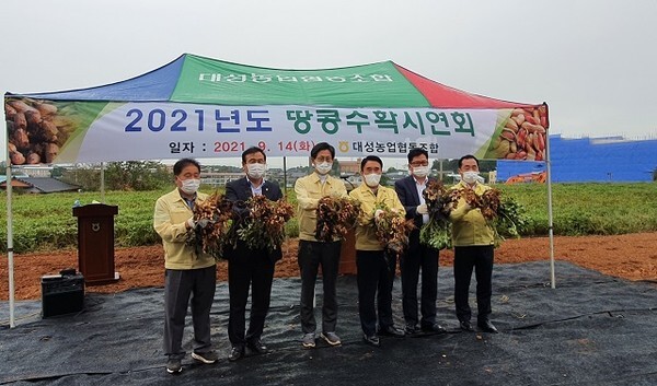 고창 대성농협(조합장 김민성)은 지난 14일 대성농협에서 직접 재배한 땅콩으로 시범포 수확시연회를 열었다.