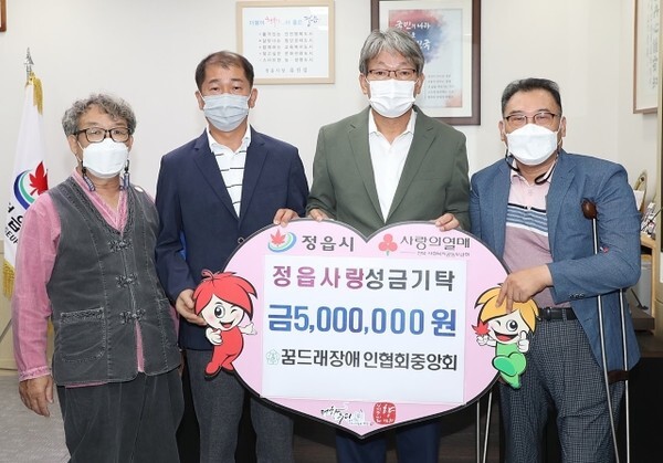 (사)꿈드래장애인협회 중앙회, 정읍시에 이웃돕기 성금 500만원 기탁